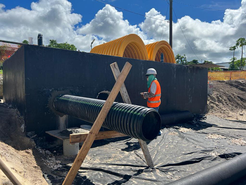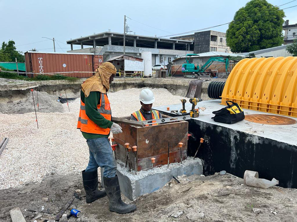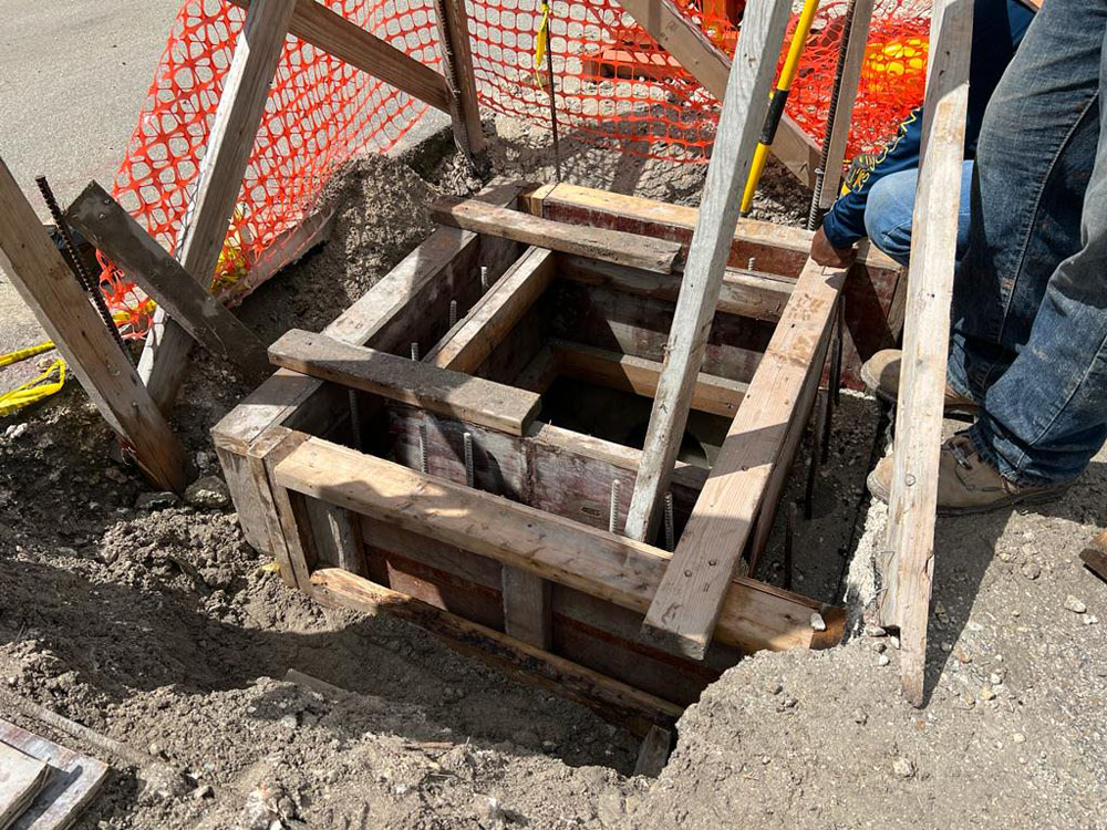 NMHC-DPW Apengagh and Ghillis Street Road and Drainage Improvement Project. IRP inspection report photo of contractor, Yantze, continuing the wooden ply-formwork by constructing a piece that will be placed on top of the catch basin structure to meet the ground surface level.
