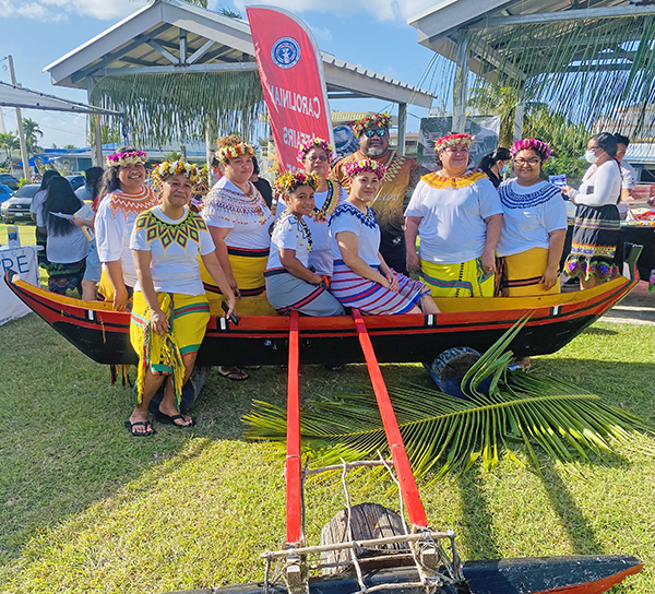 Representatives of the Carolinian Affairs Office pose for a picture during the celebration of International Women’s Month at the CNMI Museum grounds last Thursday, March 24, 2022. (Leigh Gases)