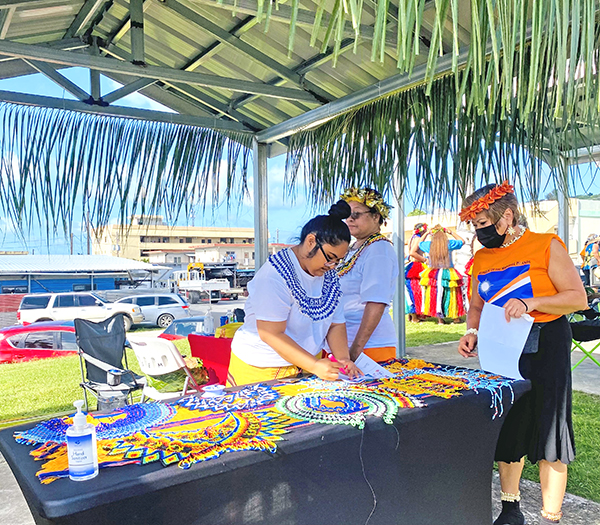 The Carolinian booth featured a colorful display during the celebration of International Women’s Month at the CNMI Museum grounds last Thursday, March 24, 2022. (Leigh Gases)