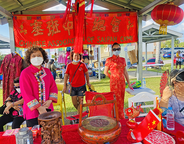 The Chinese Association of Saipan booth during the celebration of International Women’s Month at the CNMI Museum grounds last Thursday, March 24, 2022. (Leigh Gases)