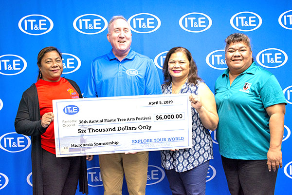 In this photo is Rob Harrell, IT&E executive director, Customer of Operations, with Flame Tree organizers. “We are excited to join this year’s Flame Tree Festival. Our partnership with the CNMI Humanities Council and the Marianas Visitors Authority is grounded in our dedication to our island’s traditions and helping people share moments that matter,” said Harrell. (Contributed Photo)
