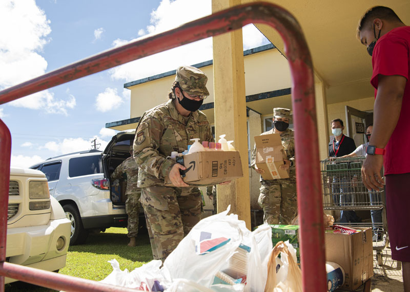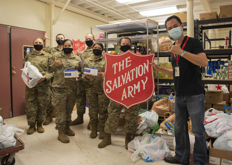 U.S. Air Force airmen from Andersen Air Force Base’s Air Force Sergeants Association Chapter 1560 donate essential items at The Salvation Army Guam Corps headquarters in Barrigada, Guam, April 8, 2021.