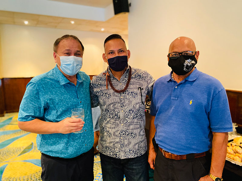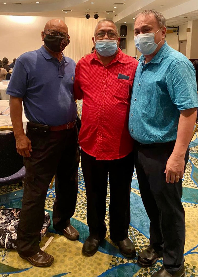 CNMI PSS 2021 State Administrative Support staff Donald San Nicolas of San Vicente Elementary School is flanked by Board of Education vice chair Herman Atalig and BOE chair Andrew L. Orsini.