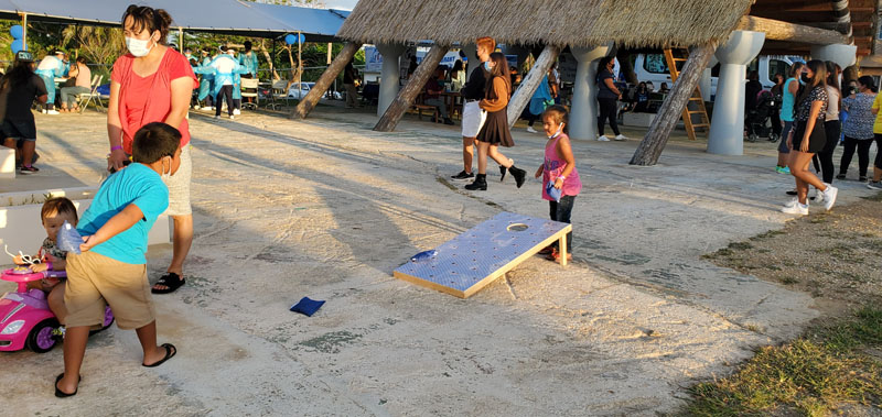 Two children play Cornhole at the Division of Youth Services’ Family Fun Night at the San Vicente Youth Center last Friday. The event also had other games and activities, a raffle, and live performances from Hopwood Middle School students, 6LICK S373N Z3R0 Group, and the MHS Glee Club. (JOSHUA SANTOS)