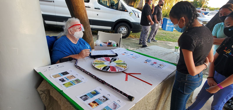 A volunteer hosts a game of “2 pics 1 word” at her booth during the Division of Youth Services’ Family Fun Night at the San Vicente Youth Center last Friday. (JOSHUA SANTOS)
