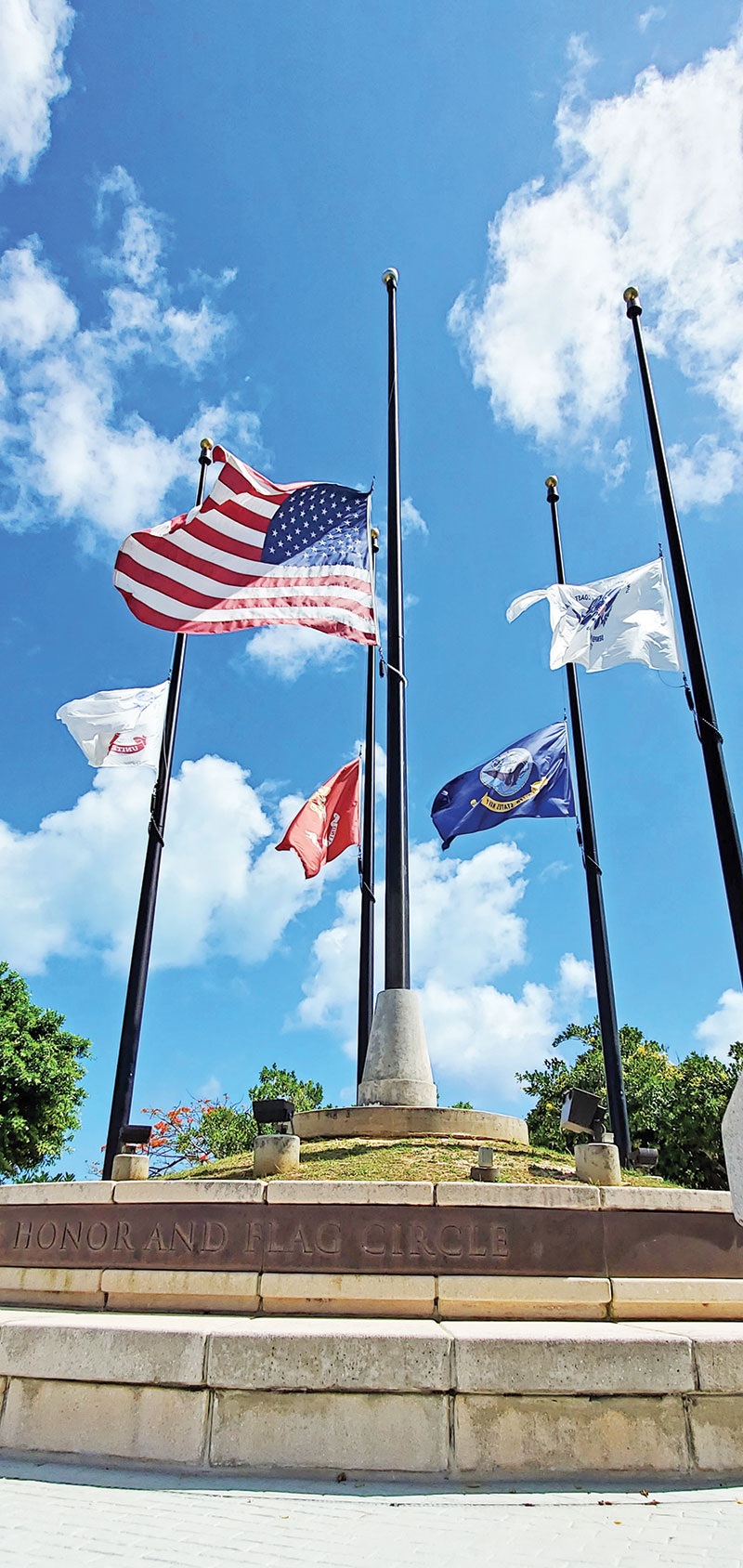 HALF-STAFF-The flags of the United States, U.S. Army, U.S. Marine Corps, U.S. Navy, and U.S. Coast Guard at the American Memorial Park Circle of Honor are flown at half-staff yesterday, in accordance with a presidential proclamation that all flags in public properties will be flown at half-staff in memory of the mass shooting victims in Indianapolis, Indiana. The flags will fly half-staff until sunset of April 20. (JOSHUA SANTOS)