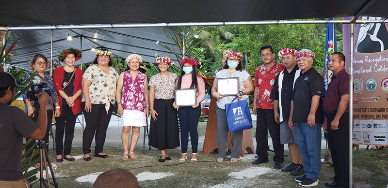 WOMEN IN MUSIC-Kaitlyn Balgoa and Tricia Manglona are recognized by first lady Diann Torres, Wella Palacios, and the Women’s Affairs Office on Rota through the Recognition of Women in Music Program for their impact as musicians in the Marianas. The awardees were also joined by Gov. Ralph DLG Torres, Lt. Gov. Arnold I. Palacios, Rota Mayor Efraim Atalig, 2021 Miss Marianas Savannah Delos Santos, and countless other volunteers and sponsors for their recognition. Congratulations to both women on their contribution to music throughout the Marianas. (CONTRIBUTED PHOTO)