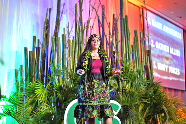 CONFERENCE ON ISLAND SUSTAINABILITY Saipan’s Rep. Sheila Babauta (D-Saipan) encourages the audience to build solidarity with each other throughout the Mariana Islands as a featured CIS Seed Talks speaker of the 2022 University of Guam Conference on Island Sustainability on April 8 at the Hyatt Regency Guam. Babauta is an environmental justice movement fellow with The New School (N.Y.) and is a representative in the 22nd Northern Marianas Commonwealth Legislature. (UOG)