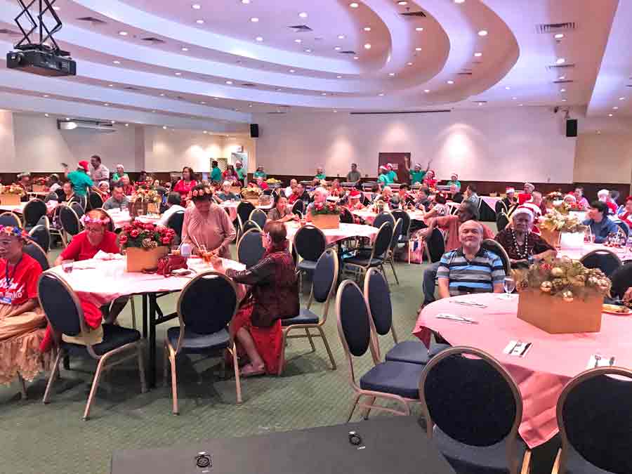 Over 70 senior citizens take part in a Christmas luncheon sponsored by the Fiesta Resort & Spa Saipan last Thursday at the Hibiscus Hall. (Kimberly A. Bautista)