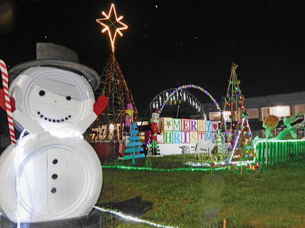 CHRISTMAS IN THE TROPICS-Despite the gloomy weather lately, the Christmas spirit is in full swing at the CNMI Office of the Governor. Picture shows one of the many Christmas-themed displays adorned with lights that will be lit up and on display at the office’s parking lot from Nov. 29 to Jan. 2 next year. (JOSHUA SANTOS)