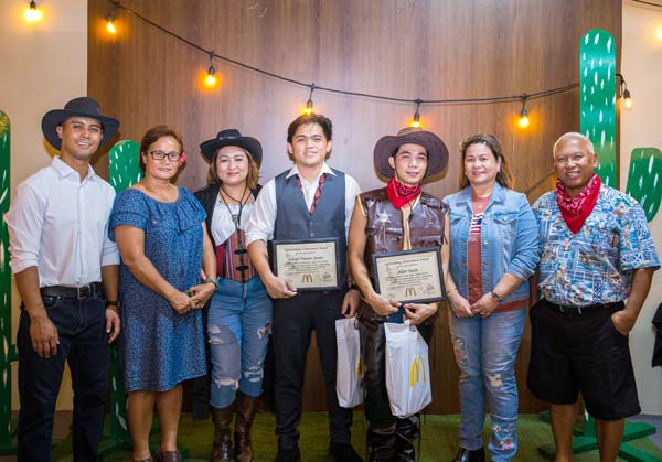 MCDONALD’S EMPLOYEES OF THE YEAR McDonald’s announced its Employees of the Year at the 2021 McDonald’s of Saipan Annual Employee Appreciation Party on Dec. 20, 2021, at the Ayuyu residence. The party, which had a Wild West theme, recognized these employees for outstanding job performance, teamwork and their dedication. From left, McDonald’s vice president Joe E. Ayuyu Jr., owner/operator Marcia E. Ayuyu, Garapan store general manager Ruthzel Perez, Garapan store’s EOY 2021 Lloyd Vincent Javier, Middle Road store EOY 2021 Allan Yacan, Middle Road store general manager Joyce Asistores, and chief executive officer/president Jose C. Ayuyu. (CONTRIBUTED PHOTO)