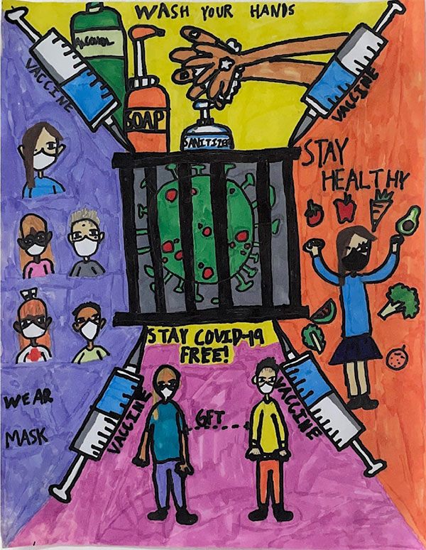 WINNING ARTWORK-Artwork by Pacifica Insurance Underwriters, Inc’s 8th Annual Pacifica Art Contest category 2 winner Austin Reyes from Dandan Middle School. This year’s theme: “Stay COVID-19 free.” For contest information, log on to www.pacificains.com/artcontest and follow Pacifica’s Facebook and Instagram accounts. Artworks are on display at their office in Susupe for public viewing. (CONTRIBUTED PHOTO)