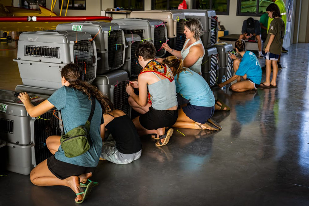 Thirty-nine boonie dogs were flown via the Micronesian Air Cargo Services from Saipan to Guam, then off to adoptive families in the United States via Lisa Schoppa-Meador Animal Travel Agent, on Monday in an effort to reduce the stray animal population in the CNMI. (CONTRIBUTED PHOTO/QUINN BREADY)