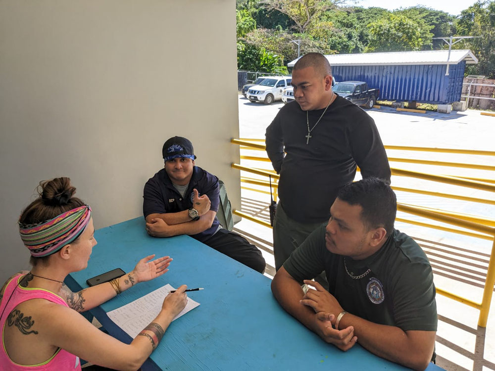 Alison Hadley, executive director of Guam Animals In Need, or GAIN, is seen teaching Saipan Mayor’s Office Dog Control Program staff about evaluating the health and behavior of shelter dogs during the spay/neuter clinic on Friday at the SMO Dog Shelter in As Perdido, in which they sterilized 68 animals. (CONTRIBUTED PHOTO)