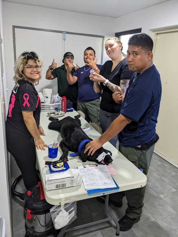 Saipan Mayor’s Office Dog Control Program staff, join clinic volunteer Kiana Propst, left, and Emily Hurtt, second right, during their last day of the spay/neuter clinic on Friday at the SMO Dog Shelter in As Perdido, in which they sterilized 68 animals. (CONTRIBUTED PHOTO)