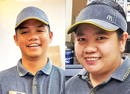 EMPLOYEES OF THE QUARTER Jalen Ibrao (Main Store) and Paola May Tindoc (Garapan Branch) are McDonald’s Saipan’s Employees of the Quarter based on their ability to demonstrate behavior that deliver a great experience for customers and their fellow employees, like always looking for ways to make the experience special for every McDonald’s customer; working with the team to deliver high standards; and having energy and enthusiasm. (Contributed Photo)