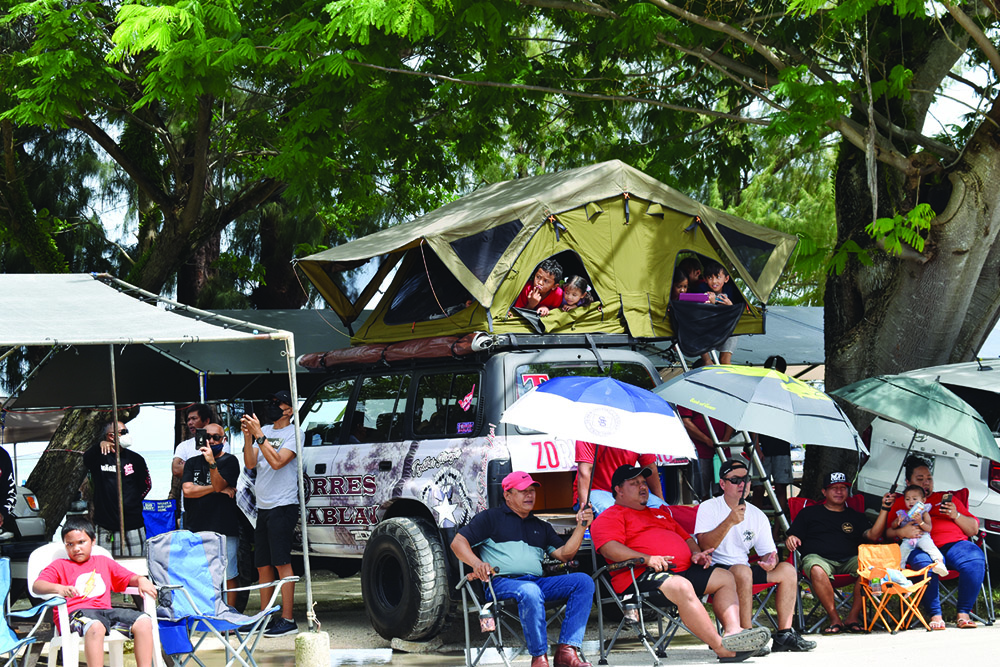 LIBERATION DAY PARADE. Spectators were camped in makeshift tents and came armed with umbrellas and cameras as they await the passing of the Liberation Day parade last Monday during the CNMI’s celebration of Liberation Day. (Photos by LEIGH GASES)