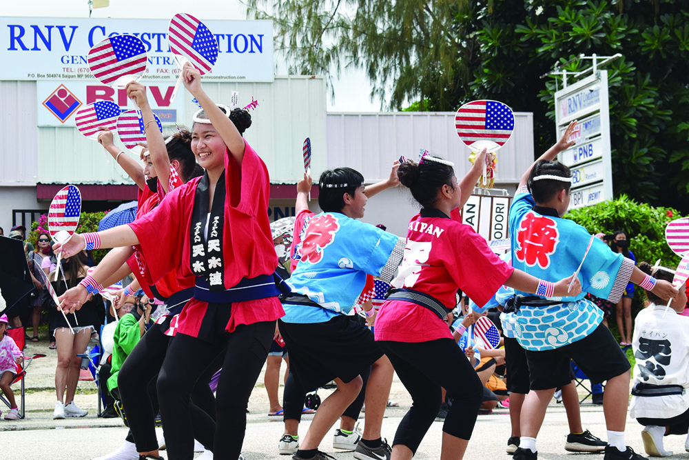 The Japanese Society of the Northern Marianas carry a shrine as they stop in front of the grandstand at the Garapan Fishing Base during the July 4 parade.