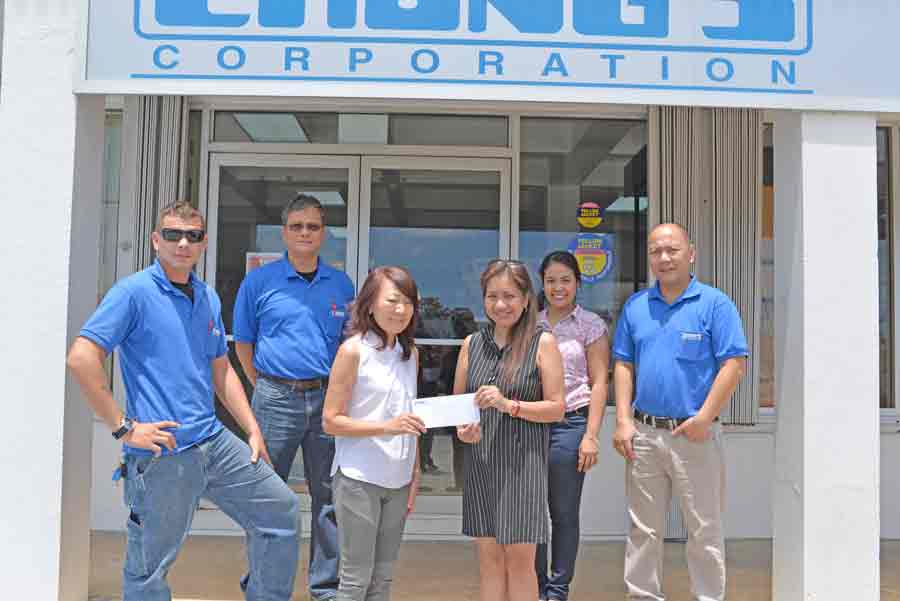 Chong’s Corp. donated $2,500 in cash to the upcoming Governor’s Tournament of Champions on May 27 and 28, 2017, at the Laolao Bay Golf & Resort. Joanna Pai, president of Chong’s Corp., third from left, presents the check donation to Marida Pensader, TOC committee member, third from right. Also in photo are representatives of Chong’s Corp. (Contributed Photo)