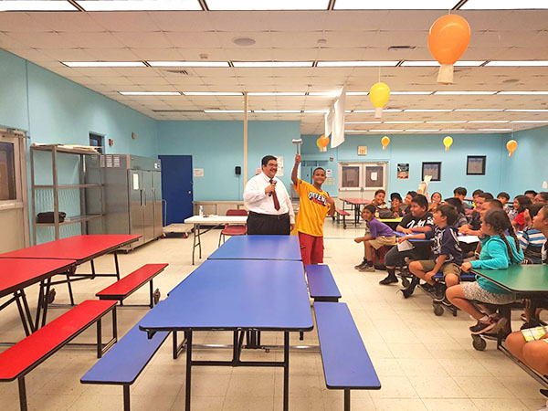 A William S. Reyes Elementary School student hefts Superior Court Associate Judge Joseph N. Camacho’s 10-lb stainless steel gavel and yells “Thor,” drawing laughs from fellow students during the judge’s discussion in the classroom last Friday. WSR invited Camacho to talk to fifth graders about separation of powers.