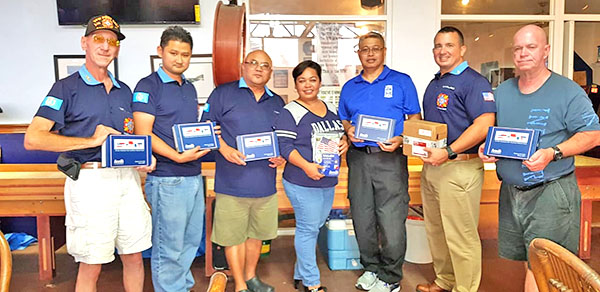 On May 11, 2018, the Veterans of Foreign Wars Post 3457 on Saipan reached out to their fellow veterans on Tinian for the first time. The VFW members donated service flags, flags of each military branch, buddy poppies, and a special award for the Tinian Junior/Senior High School JROTC. The buddy poppies that are made by disabled veterans nationwide are worn during Memorial Day to honor the fallen. The VFW is a non-profit organization that provides assistance and support to service members, veterans and their families. Present to receive the donations on behalf of the Tinian veterans were Tania Marie Mendiola, CNMI Military/Veterans Affairs administrative assistant, and Capt. Joseph A. Santos, TJSHS JROTC instructor, who is a veteran himself. (Contributed Photo)