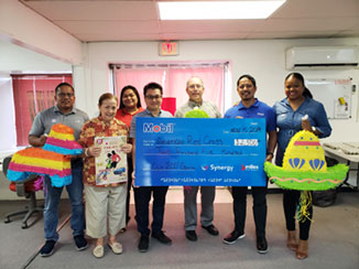 SUPPORT POURS FOR CLUB 200 Mobil Oil Mariana Islands Inc. president Jimmy Tim Chau Hau, along with his team, presents a $2,500 check to the American Red Cross-NMI Chapter to support the annual Club 200 fundraising event. John Hirsh, executive director of the American Red Cross-NMI Chapter, along with board members and staff, received the donation, saying Mobil has been and continues to be a major supporter of the American Red Cross in the CNMI. (Contributed Photo)