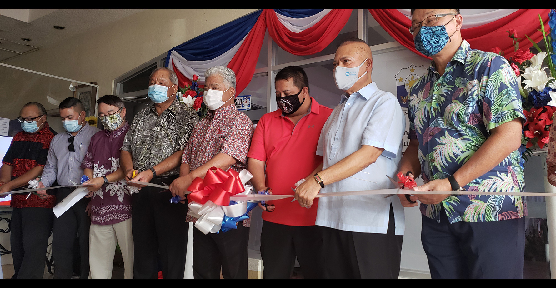 NEW OFFICE-Gov. Ralph DLG. Torres, third from right, Lt. Gov. Arnold I. Palacios, fourth from right, other government officials, TanHoldings and Tan Siu Lin Foundation officials, and guests cut the ribbon for the official opening of the Philippine Honorary Consulate Office under honorary consul Glicerio “Eli” Arago, second from right, last Friday, Oct. 16, at the Sun Palace Hotel in Susupe. (Photos by NEIL FAMA)