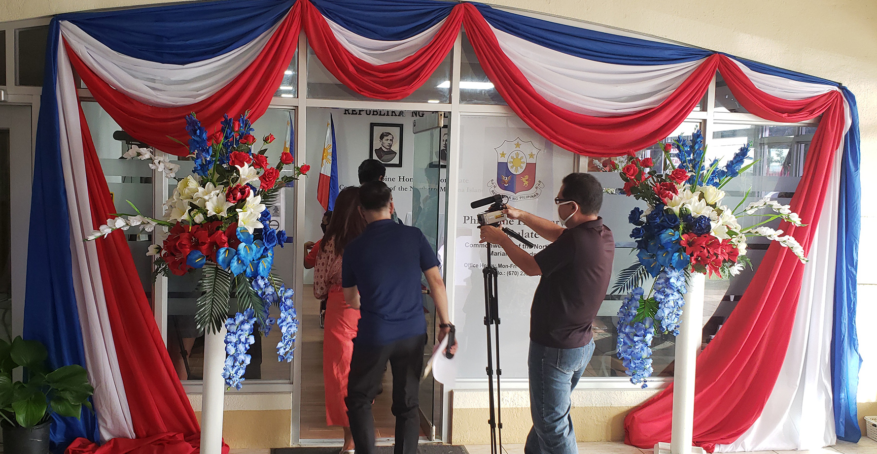Guests enter the new office of the Philippine Honorary Consulate Office after the official opening last Friday, Oct. 16, at the Sun Palace Hotel in Susupe.
