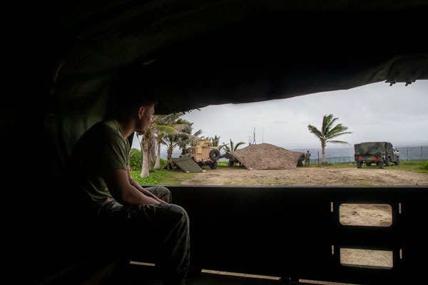 EXERCISE FREEDOM BANNER U.S. Marine Corps Sgt. Orlando Alvarez, a motor transport operator with 5th Battalion, 11th Marine Regiment, 1st Marine Division, watches over the fire direction control center on Tinian, Northern Mariana Islands, Aug. 12, 2021. Exercise Freedom Banner is designed for 1st Marine Expeditionary Force to train a Maritime Prepositioning Force by establishing an Expeditionary Advanced Base and increase relations in the Indonesian Pacific region. (LANCE CPL. AUSTIN GILLAM)