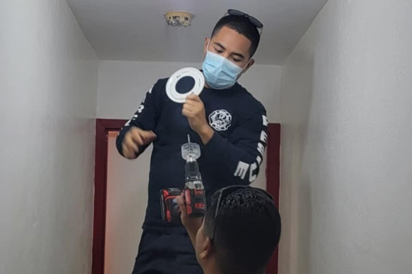 SMOKE ALARM CAMPAIGN: Teams from the American Red Cross-NMI Chapter, along with Department of Fire and Emergency Medical Services and Aircraft Rescue and Firefighting of the Commonwealth Ports Authority installed reportedly over a thousand smoke alarms in the homes of the public last Saturday, Oct. 9, 2021, as part of the annual Smoke Alarm Campaign. They also gave some public education about the smoke alarms and what they should do when the alarms go off. This campaign goes along with National Fire Prevention Week and the theme, “Learn the sounds of fire safety.” Photos taken from the DFEMS social media page. (DFEMS)