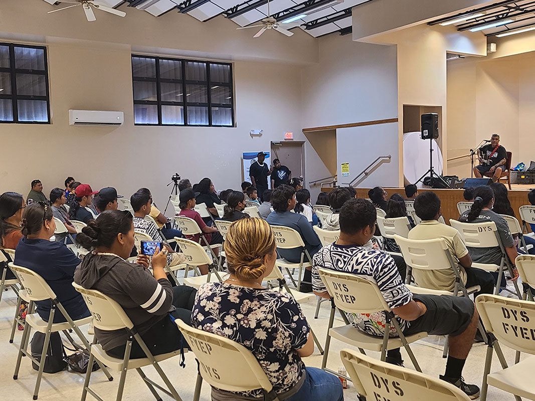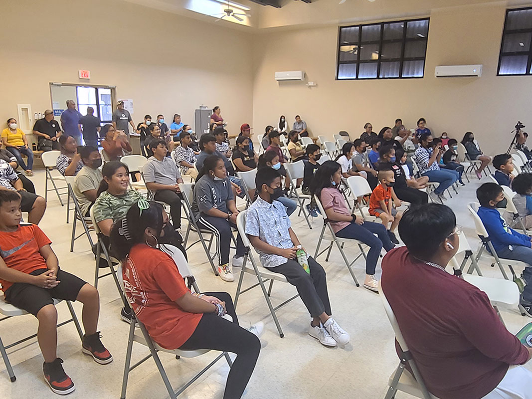 BABA B IN KAGMAN 3-Young individuals and community members smile while listening to Hawaiian singer Baba B as he performs at the Division of Youth Services and CNMI Council of Arts event last Sept 21 at the Kagman Community Center in Kagman 3. (CHRYSTAL MARINO)