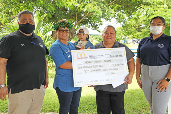 MCS THANKS MCDONALD’S Mount Carmel School thanks McDonald’s of Saipan for their recent donation of $5,000 in celebration of the school’s 70th anniversary. For more information about the school’s 70th anniversary and how to support the school, visit www.mountcarmelsaipan.com.(CONTRIBUTED PHOTO)