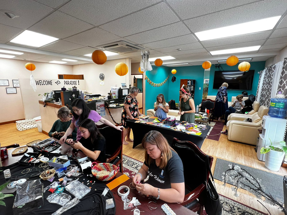 SOROPTIMIST SIP AND CRAFT-Soroptimist Inc. NMI Chapter hosted a jewelry and card making with a Halloween flair last Oct. 8, 2022, at the Paradise Dental Clinic & Spa. From left, Anastasia Shamanaeva, Alesa Ilmov, Seina Morgan, Kimberly Morgan, Mika Backe, Dr. Ana Maria Gregor, Baila Marie Loomis, Jessy Loomis, Donna Krum, Kyrie Palec, Soroptimist president Maureen Sebangiol, Tatiana Ilmov, and Wannaby Backe. Not in the picture are Pam Brown and Merle Byrd. (CONTRIBUTED PHOTOS)