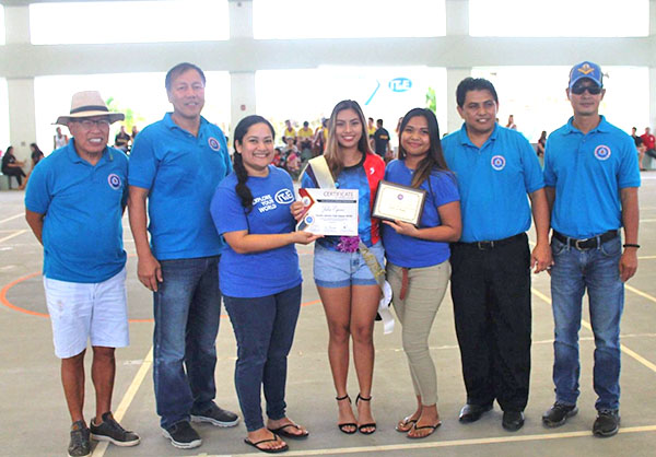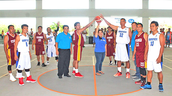 IT&E CNMI marketing manager Natashia Tomokane does the ceremonial ball toss to start the opening match between Armatech and Pacific Postal Plus in the IT&E Emon Masonic Lodge No. 179 Brotherhood Mixed Masters Basketball League 2018 last Sunday at the Koblerville Gymnasium.