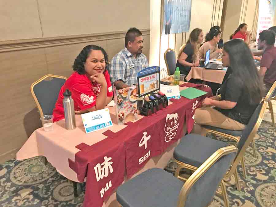 Saipan World Resort representatives do interviews at the 2018 Cooperative Education Job Fair at the Saipan World Resort’s Royal Taga Hall last Thursday.