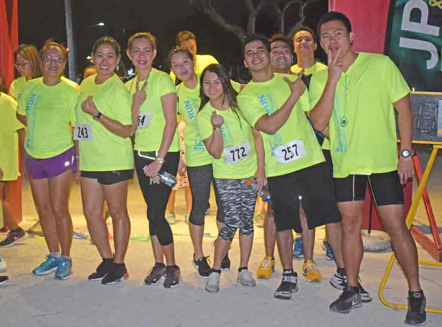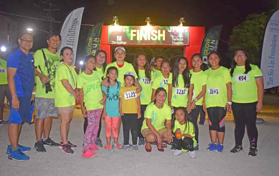 Tania Tan heads back to the start/finish line en route to topping the women’s division of last Friday’s JP Glow Run that began and ended at the Garapan Fishing Base.