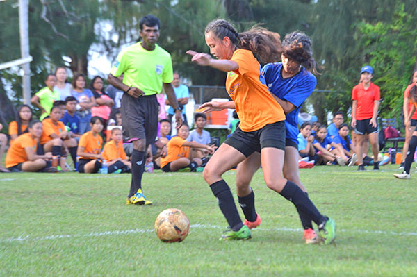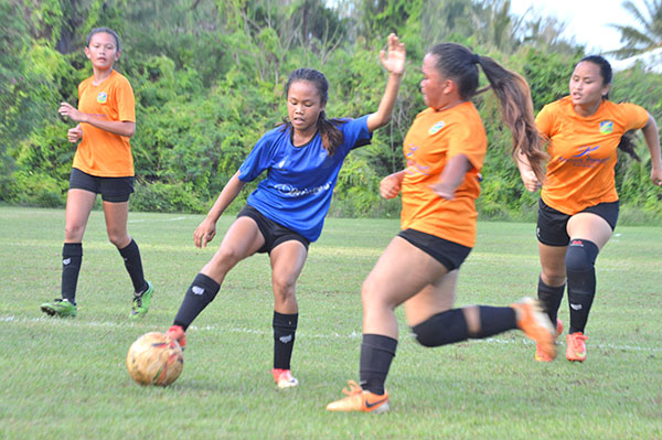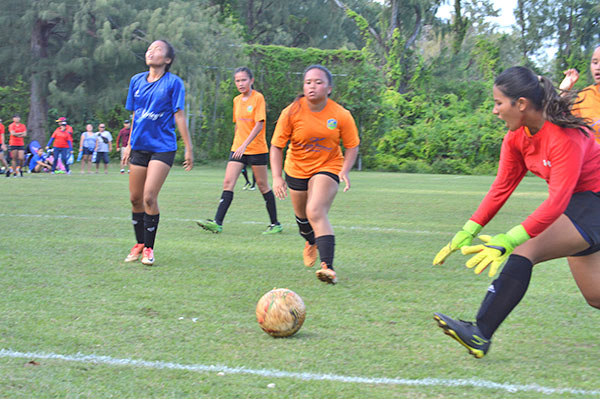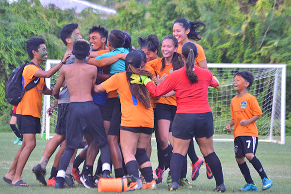 Kanoa Football Club players and their supporters celebrate after beating Shirley’s FC, 2-1, during their title showdown in the girls U16 division of the 2018 NMIFA Spring Youth League last month at the Francisco M. Sablan Middle School Field.