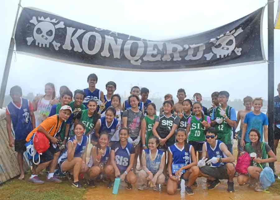 Saipan International School students celebrate at the finish line of last Saturday’s KONQER Saipan King of the Hill at the Gov. Eloy S. Inos Peace Park.