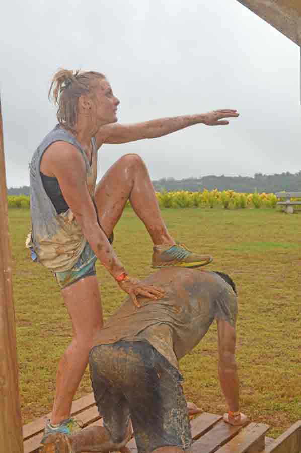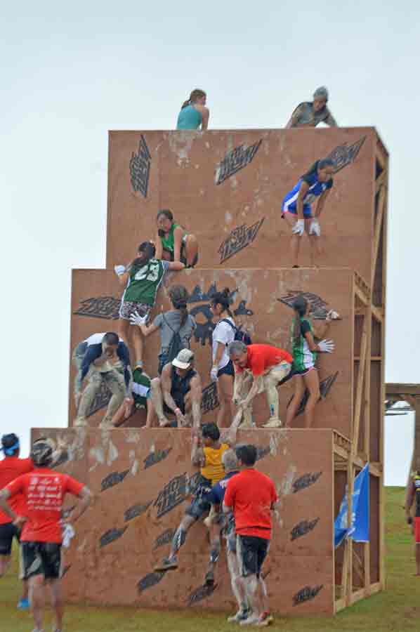 Participants help each other climb one of the walls at KONQER Saipan King of the Hill held last Saturday at the Gov. Eloy S. Inos Peace Park.