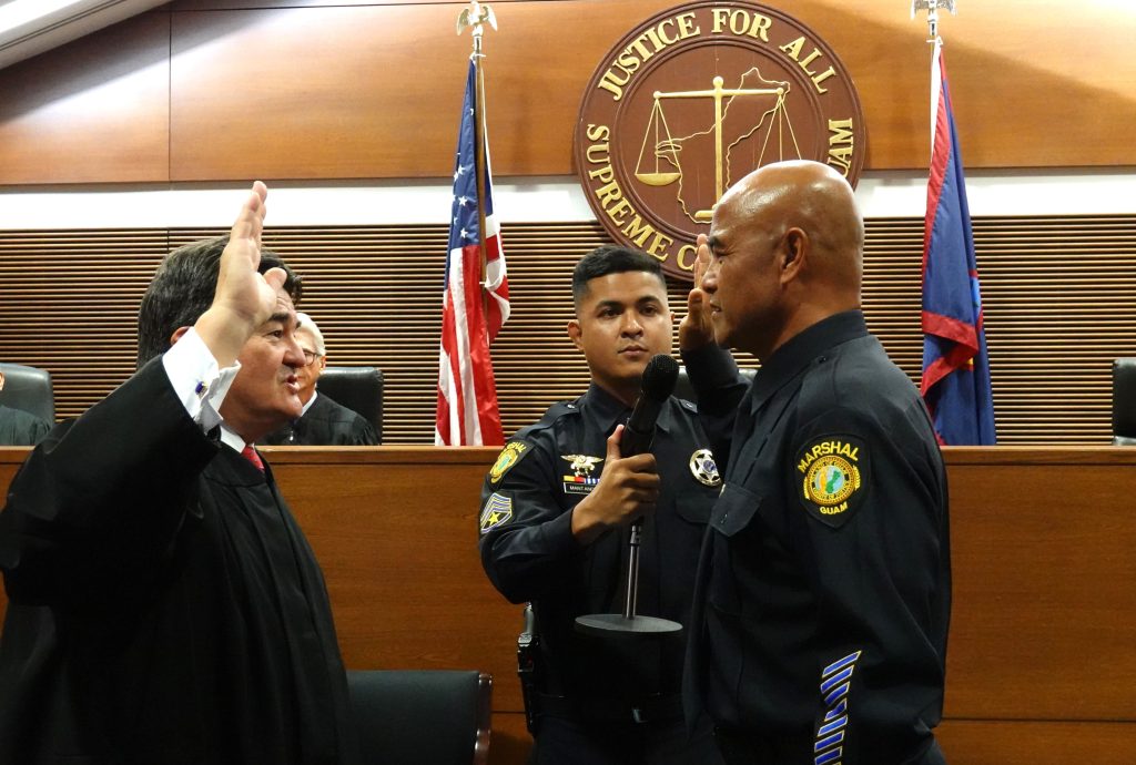 Chief Justice Robert J. Torres presided over the swearing-in ceremony of Leo S. Diaz, the Guam Judiciary’s new marshal of the courts.
