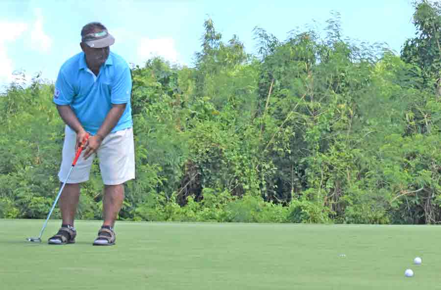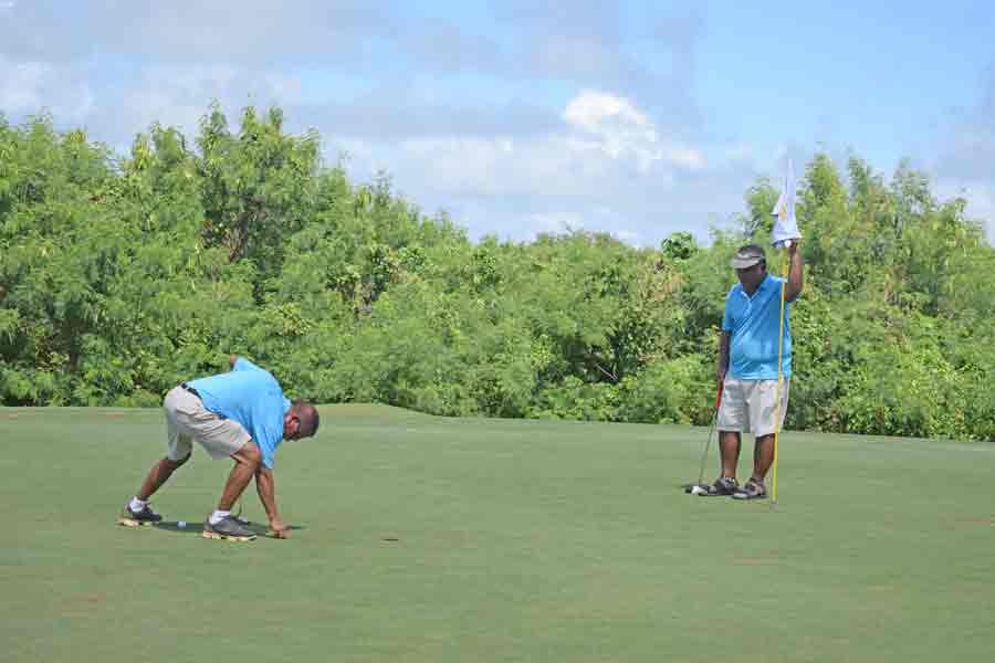 The CNMI’s Manny Mangarero watches the direction of his putt.