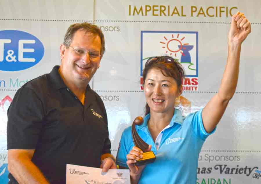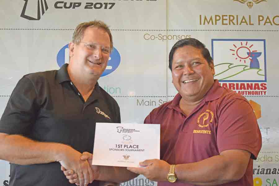 Department of Lands and Natural Resources secretary Anthony Benavente, right, is the inaugural champion of the Marianas International Cup’s sponsor’s tournament.