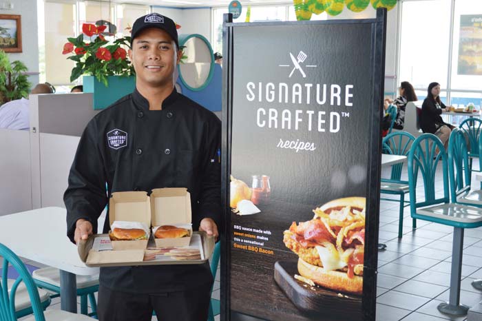 McDonald’s Saipan Middle Road Branch manager Joe Ayuyu Jr. poses with the new uniform associated with the new menu items McDonald’s Saipan is offering. (Kimberly A. Bautista)