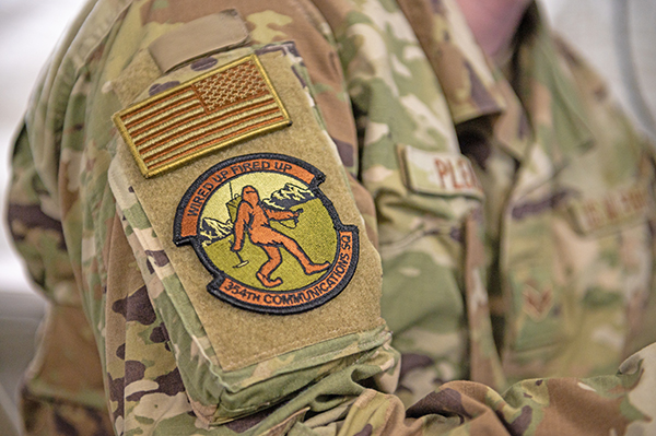 Senior airman Michael Pleau, 354th Communications Squadron communication flyaway kit technician, wears his squadron patch during Cope North 22 on Rota. (U.S. AIR FORCE/AIRMAN 1ST CLASS YOSSELIN PERLA)