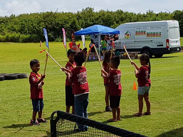 The first ever Chamorro and Carolinian Language Immersion program at Kagman Elementary School for Kindergartners also had a booth and gave away prizes for people who answered questions quizzed from their brochure that day. Their first cohort of students from this year performed for everyone at the event.