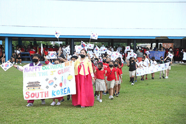 In celebration of Commonwealth Cultural Day, Mount Carmel School reinstated its Cultural Day Celebration last Friday, Oct. 8, 2021. Students from all grade levels performed a cultural and modern dance, designed a banner, decorated a booth providing information about their assigned culture, and wore costumes based on the cultures they represented. Parents and families were invited to watch their students perform. The cultures represented this year include Australia, the Caroline Islands, China, the Commonwealth of the Northern Marianas Islands, Hawaii, India, Jamaica, Japan, South Korea, Mexico, New Zealand, the Philippines, Russia, and Thailand.