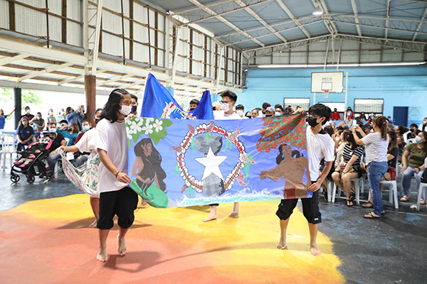 Mount Carmel School’s senior brought the Cultural Day celebration full circle by representing the CNMI. In the photo, MCS seniors presented their CNMI banner to the judges for deliberation. (MCS)