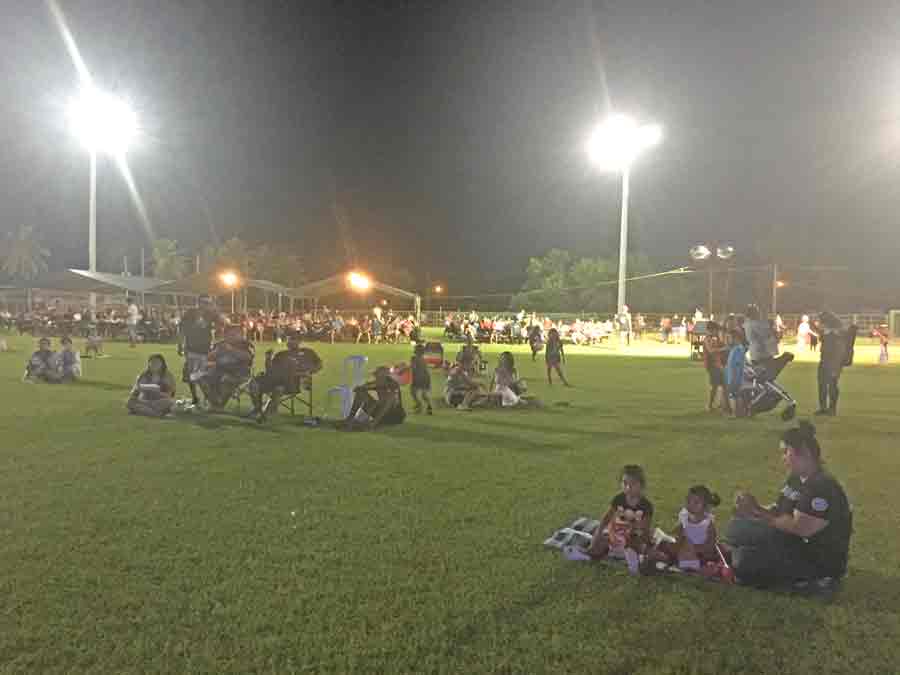 Many community members came out to enjoy the live music during the Docomo Pacific/United Airlines Movie and Music Night at the Francisco C. Palacios Baseball Field last Saturday night.