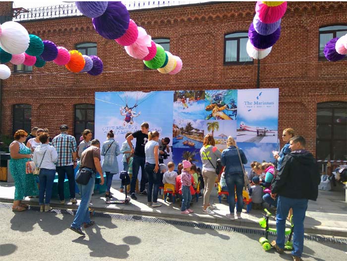 The outdoor city-format event, organized by travel operator Fregat Aeroand the local government presented the opportunity to increase awareness of The Marianas among Vladivostok citizens and to promote the Islands as the best destination for family vacations. The event was held downtown in Naberezhnaya Cesarevicha, a space popular with local residents for its beautiful walking zone and variety of family activities. Tourism offices, travel operators, local design studios, food and beverage suppliers and other companies from the Vladivostok region participated in the event.