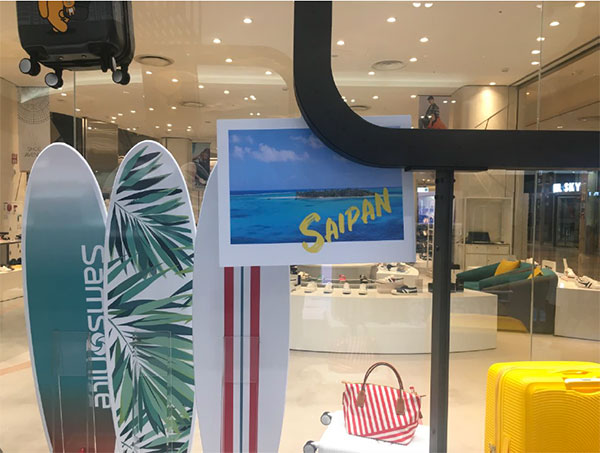 Samsonite Korea recently opened up its very first concept store, Life is @Journey, in Lotte Department Store in Seoul and Busan for one-stop travel shopping. Guests can not only purchase travel goods, but also book their trip at an agency located within the Life is @Journey store. This month The Marianas destination is being exposed with vivid images, and the event is being promoted at the store through plasma displays and printed material such as pop-up banners.